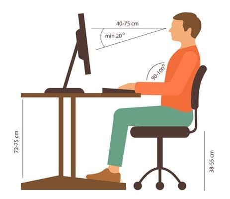 הקצה העליון של המסך גבוה ב5-7 ס"מ מגובה העיניים, כאשר הגב זקוף